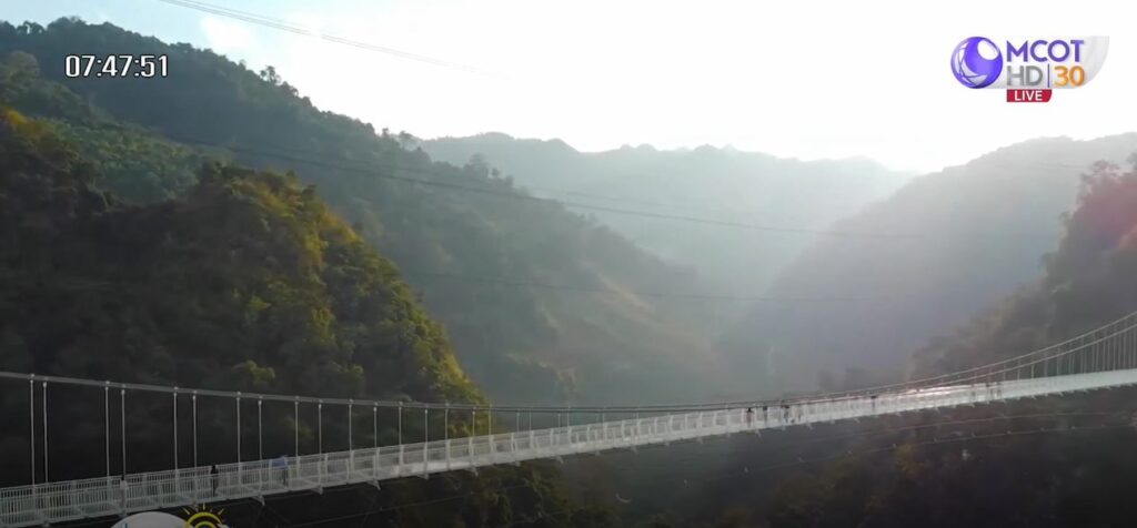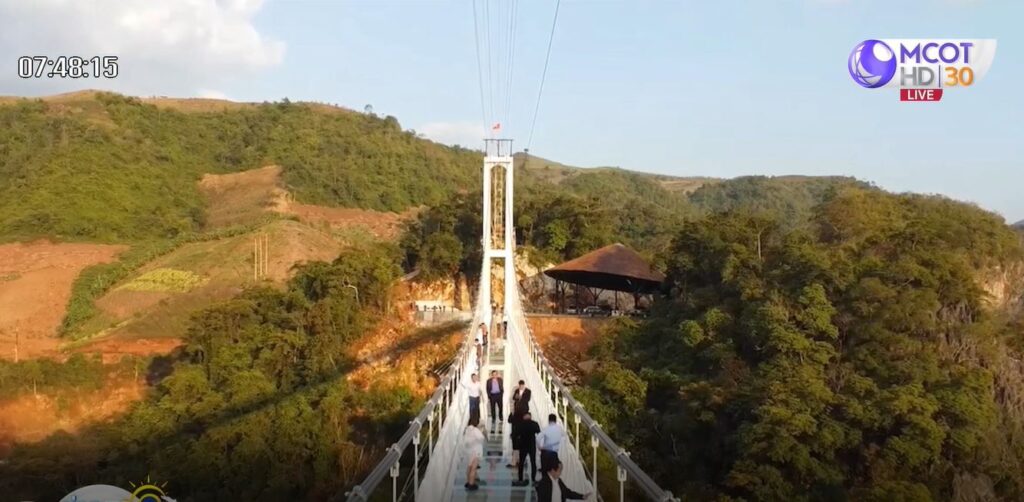 เวียดนาม ประกาศแหล่งท่องเที่ยวท้าความสูงแห่งใหม่ ด้วยสะพานแขวนพื้นกระจกเหนือป่าเขียวชะอุ่ม ชื่อว่า สะพานเดินเท้าบักลอง แปลว่า “มังกรขาว” อยู่ในเมืองหมกโจว์ จังหวัดเซินลา ทางตะวันตกเฉียงเหนือของประเทศ