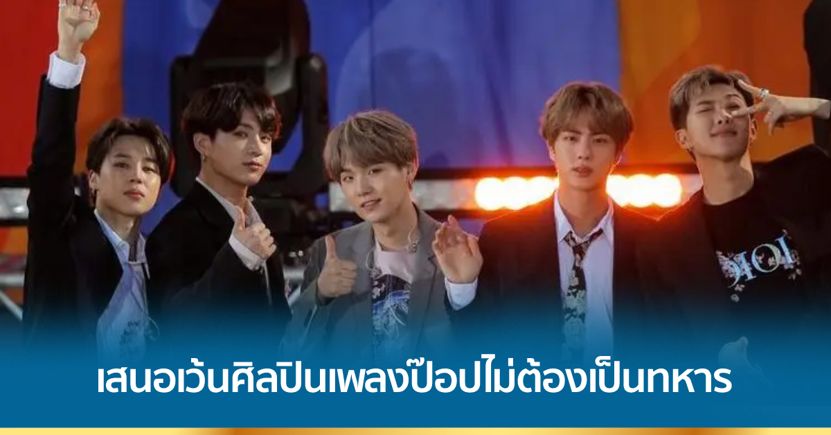 โซล 4 พ.ค. – นายฮวาง ฮี รัฐมนตรีวัฒนธรรมของเกาหลีใต้กล่าววันนี้เสนอให้มีการอนุญาตให้ศิลปินนักร้องเพลงป๊อปผู้ชายที่ได้รับการยอมรับในระดับโลก อย่างเช่น บีทีเอส ให้ทำงานในโครงการอื่นๆ เพื่อเป็นทางเลือกแทนที่จะต้องเข้าทำหน้าที่ในกองทัพตามที่กฎหมายกำหนด ในขณะที่เกิดกระแสโต้เถียงกันอย่างกว้างขวางว่า ศิลปิน เคป๊อป ควรได้รับการยกเว้นไม่ต้องเป็นทหารหรือไม่
