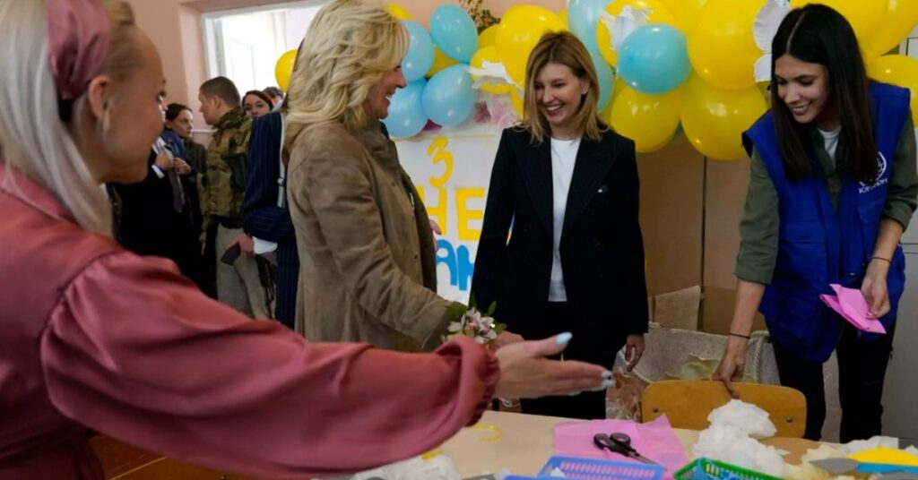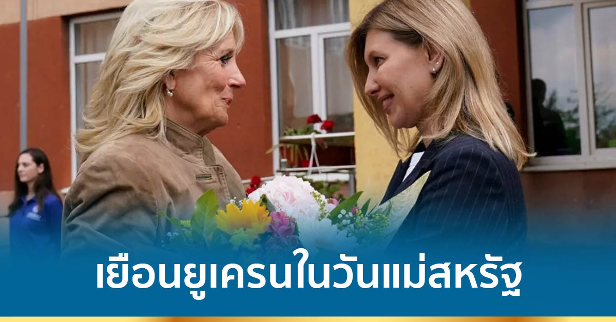 เคียฟ 9 พ.ค. – นางจิล ไบเดน สุภาพสตรีหมายเลขหนึ่งของสหรัฐ เดินทางเยือนยูเครนเมื่อวันอาทิตย์ ซึ่งตรงกับวันแม่แห่งชาติของสหรัฐ และได้พบกับนางโอเลนา เซเลนสกา ภริยาของประธานาธิบดีโวโลดีมีร์ เซเลนสกี ของยูเครน ในโรงเรียนแห่งหนึ่งที่ใช้เป็นศูนย์พักพิงให้แก่พลเรือนพลัดถิ่นจากสงครามยูเครน