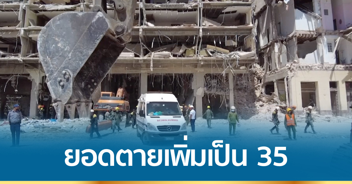 คิวบา 10 พ.ค.- ยอดผู้เสียชีวิตจากเหตุการณ์ระเบิดรุนแรงที่โรงแรมหรูในคิวบา เพิ่มขึ้นอย่างต่อเนื่อง ล่าสุดยอดเพิ่มเป็น 35 คนแล้ว
