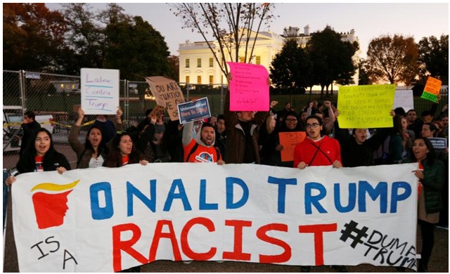 วอชิงตัน/นิวยอร์ค 11 พ.ย. – ผู้ประท้วงหลายร้อยคน ส่วนใหญ่เป็นนักเรียนที่ไม่ยอมเข้าชั้นเรียน ออกไปชุมนุมตามท้องถนนในหลายเมืองทั่วประเทศสหรัฐเป็นวันที่ 2 ในวันพฤหัสบดีเพื่อประท้วงต่อต้านผลการเลือกตั้งประธานาธิบดีที่นายโดนัลด์ ทรัมป์ จากพรรครีพับลิกันได้รับชัยชนะ