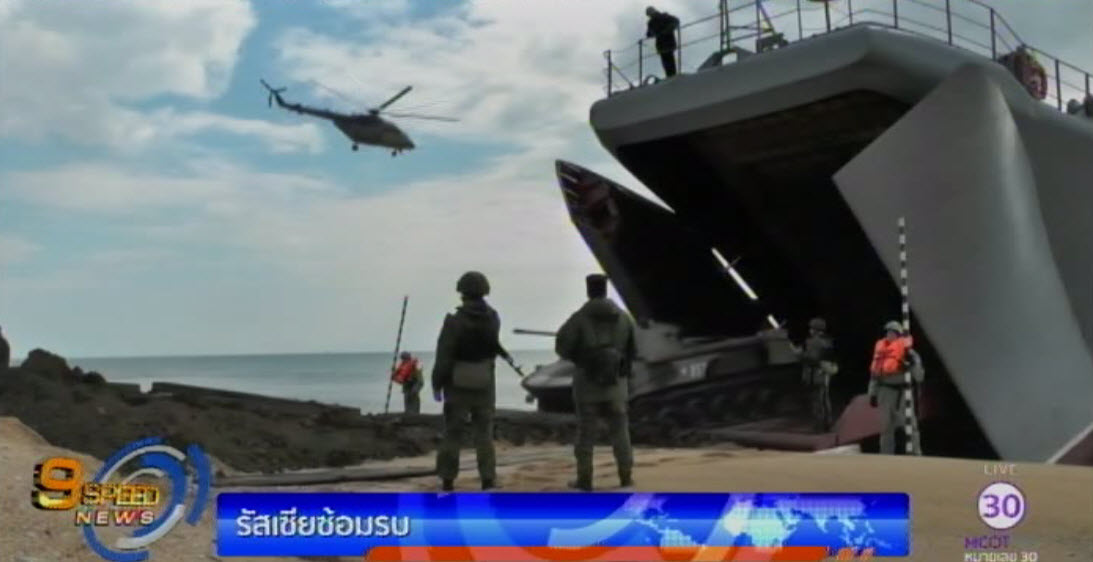 รัสเซีย 22 มี.ค. – พลร่มรัสเซียกว่า 2,000 คน เข้าร่วมการซ้อมรบขนาดใหญ่ ที่จัดขึ้นบริเวณค่ายฝึกในคาบสมุทรไครเมีย เพื่อต่อต้านภัยคุกคามจากการก่อการร้ายในภูมิภาคที่ทวีความรุนแรงมากขึ้น การฝึกซ้อมมีทั้งการยกพลขึ้นบกของยานยนต์สะเทินน้ำสะเทินบก การกระโดดร่ม และการยิงปืนใหญ่ รัสเซียมักจัดการซ้อมรบโดยไม่มีการแจ้งล่วงหน้าบนคาบสมุทรไครเมียอยู่บ่อยครั้ง หลังจากคาบสมุทรแห่งนี้ถูกรัสเซียผนวกดินแดนไปเมื่อเดือนมีนาคม 2557. – สำนักข่าวไทย