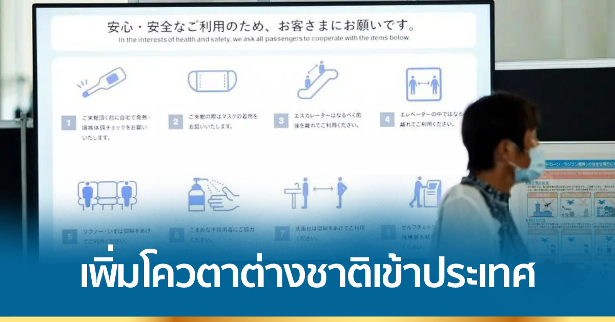 โตเกียว 20 พ.ค. – ญี่ปุ่นจะเพิ่มโควตาจำนวนชาวต่างชาติที่ได้รับอนุญาตให้เข้าประเทศเป็น 2 เท่า เป็นวันละ 20,000 คน ตั้งแต่เดือนหน้าเป็นต้นไป
