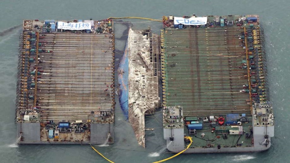 โซล 24 มี.ค. – เจ้าหน้าที่ในเกาหลีใต้ยังคงใช้ความพยายามในการกอบกู้ซากเรือเซวอลอย่างต่อเนื่องเป็นวันที่ 2โดยล่าสุดได้มีการส่งนักประดาน้ำลงไปปลดชุดทางลาดที่ห้อยออกมาจากตัวเรือ เพื่อให้ยกเรือระวางขับน้ำ 6,800 ตันลำนี้ขึ้นมาจากทะเลได้ตามแผน