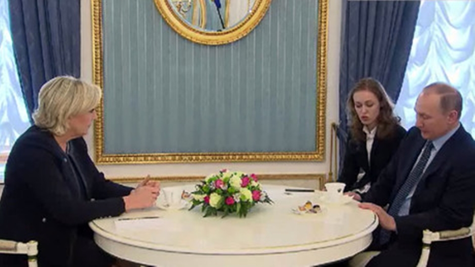 มอสโก 24 มี.ค.- นางมารีน เลอ เปน หัวหน้าพรรคเนชันนัลฟรอนต์ ซึ่งเป็นพรรคขวาจัดของฝรั่งเศสและเป็นผู้สมัครรับเลือกตั้งประธานาธิบดีเข้าพบประธานาธิบดีวลาดิเมียร์ ปูตินของรัสเซียในวันนี้