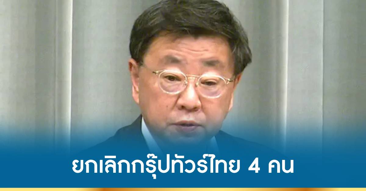 โตเกียว 31 พ.ค.- สำนักงานการท่องเที่ยวของญี่ปุ่นแจ้งว่า ได้ยกเลิกการท่องเที่ยวแบบทดลองของกรุ๊ปทัวร์ไทย 4 คน หลังจากสมาชิกคนหนึ่งมีผลการตรวจหาเชื้อไวรัสโคโรนา 2019 เป็นบวก