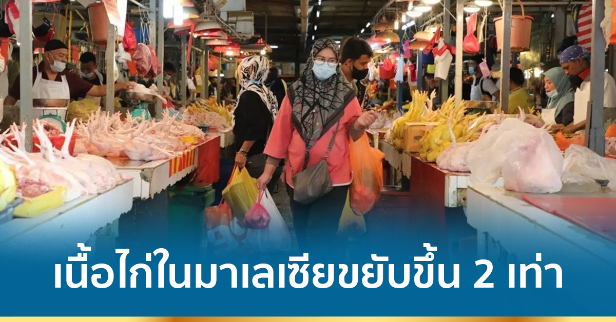กัวลาลัมเปอร์ 1 มิ.ย. – ราคาเนื้อไก่ในมาเลเซียปรับตัวสูงขึ้นเกือบ 2 เท่าจากเพดานราคาที่รัฐบาลมาเลเซียกำหนดไว้ โดยมีราคาขายพุ่งสูงถึงกิโลกรัมละ 17 ริงกิตมาเลเซีย (133 บาท) จากเพดานราคากิโลกรัมละ 8.90 ริงกิตมาเลเซีย (70 บาท) หลังมาเลเซียประกาศระงับส่งออกไก่เดือนละ 3.6 ล้านตัวตั้งแต่วันนี้เป็นต้นไป เนื่องจากประสบปัญหาขาดแคลนเนื้อไก่ในประเทศ
