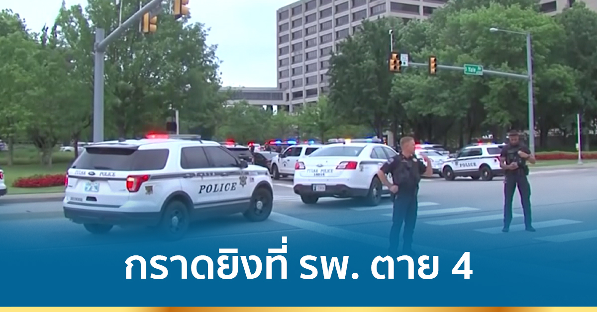 เกิดเหตุกราดยิงที่อาคารแห่งหนึ่ง ในบริเวณโรงพยาบาล เมืองทัลซา รัฐโอคลาโฮมาของสหรัฐ เป็นเหตให้มีผู้เสียชีวิตในเบื้องต้น 4 ราย และบาดเจ็บอีกหลายคน ส่วนมือปืนเสียชีวิตจากการถูกยิงเช่นกัน ส่วนแรงจูงใจ ของการก่อเหตุครั้งนี้ยังไม่แน่ชัด ภาพถ่ายจากเฮลิคอปเตอร์แสดงให้เห็นทีมกู้ภัยกำลังเข็นรถเข็น นำคนเจ็บออกจากอาคาร ขณะที่เจ้าหน้าที่ตำรวจหลายนายตรึงกำลังบริเวณโดยรอบโรงพยาบาล รวมทั้งสั่งปิดการจราจร และอยู่ระหว่างสอบสวนหาสาเหตุของการกราดยิงครั้งนี้ .-สำนักข่าวไทย
