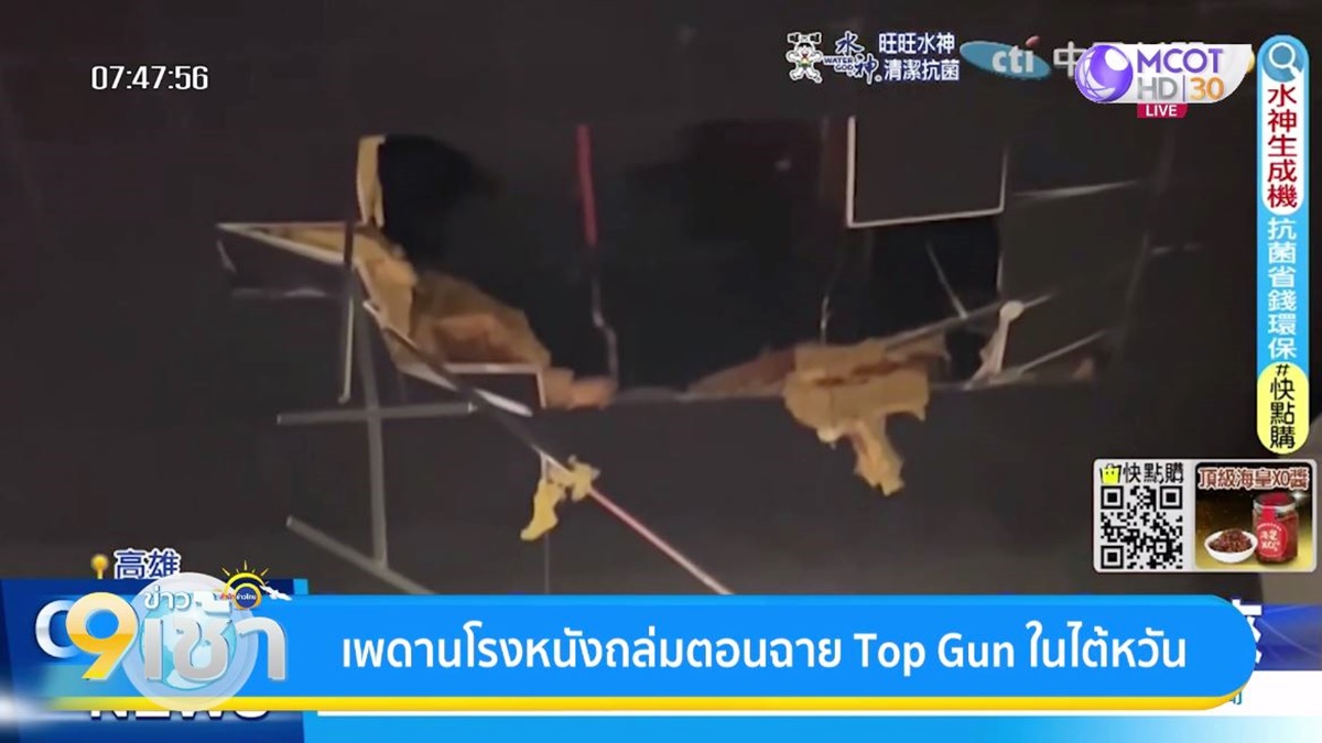 ขณะที่แฟนหนังจำนวนมากภายในโรงภาพยนตร์ IMAX แห่งหนึ่งในเมืองเกาสงของไต้หวัน กำลังสนุกตื่นเต้นกับฉากไล่ล่าและยิงต่อสู้ของเครื่องบินขับไล่ ในภาพยนตร์เรื่อง Top Gun : Maverick หรือชื่อที่ใช้โปรโมตในไต้หวัน คือ Defender Warrior : The Lone Ranger ซึ่งนำแสดงโดย “ทอม ครูซ” เมื่อรอบบ่ายวันเสาร์ที่ผ่านมา ปรากฏว่า อยู่ๆ เพดานโรงภาพยนตร์ก็เกิดพังถล่มลงมา เศษซากตกกระจายภายในโรงภาพยนตร์ โชคดีที่ไม่มีใครได้รับบาดเจ็บ เนื่องจากเศษซากเพดานส่วนใหญ่เป็นวัสดุคล้ายฟองน้ำเพื่อบุกันเสียง