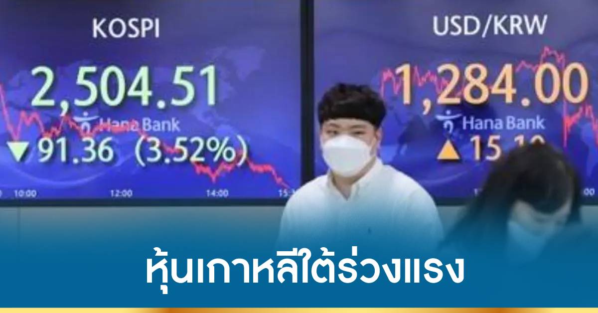 โซล 13 มิ.ย.- ตลาดหลักทรัพย์ในเกาหลีใต้ร่วงลงแตะระดับต่ำที่สุดในรอบ 19 เดือนในวันนี้ เช่นเดียวกับเงินวอนที่อ่อนค่าลงอย่างมากเมื่อเทียบกับดอลลาร์สหรัฐ เพราะตลาดกังวลว่าสหรัฐจะขึ้นอัตราดอกเบี้ยอย่างมากเพื่อชะลอเงินเฟ้อสูง และเศรษฐกิจโลกจะชะลอการเติบโต