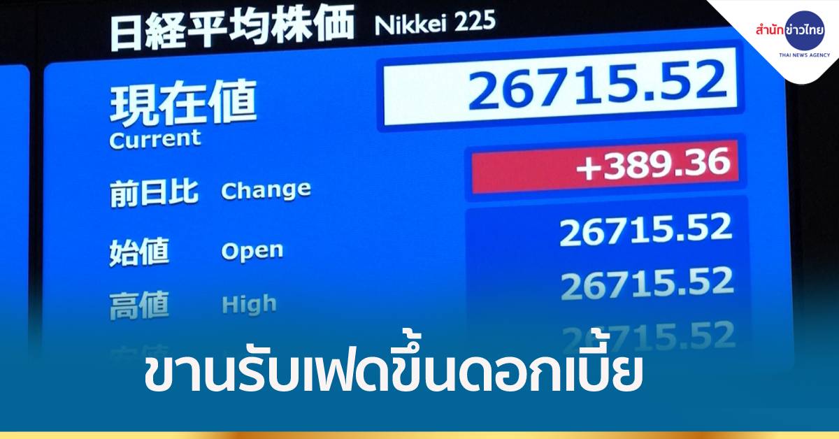 ดัชนีนิกเคอิ เปิดตลาดที่ 26.712.52 จุด ปรับขึ้น 1.48% เช่นเดียวกับดัชนี ASX ตลาดหุ้นออสเตรเลียที่ขยับขึ้น 0.64% เปิดที่ 6,643.2 จุด หลังจากดัชนีติดลบตลอด 4 วันที่ผ่านมา ขณะที่ดัชนี KOSPI ของเกาหลีใต้ ก็ปรับขึ้น 1.40 % เปิดที่ 2,481.66 จุด เป็นผลจากนักลงทุนพึงพอใจการปรับขึ้นดอกเบี้ยร้อยละ 0.75 ของเฟด ซึ่งเป็นไปตามที่หลายฝ่ายคาดการณ์ โดยเฟดหวังลดอัตราเงินเฟ้อ และนักลงทุนมองว่าจะเป็นผลดีต่อเศรษฐกิจในระยะยาว. – สำนักข่าวไทย