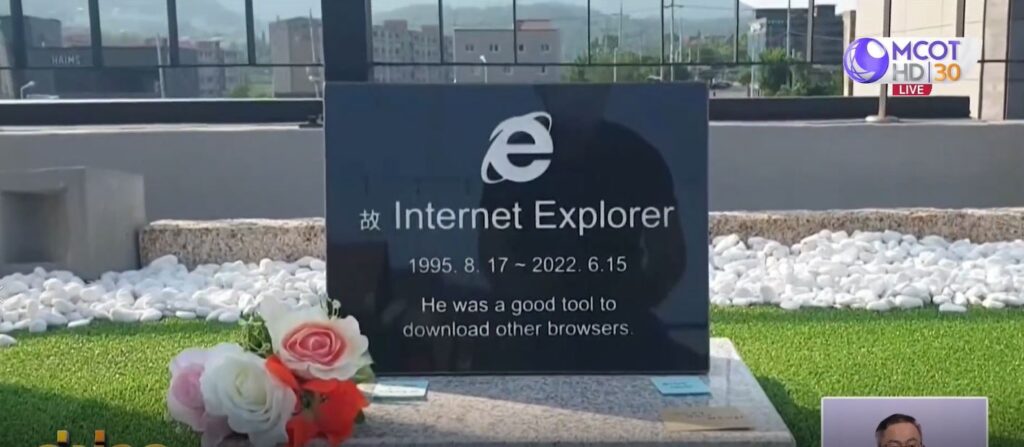 เกาหลีใต้ 19 มิ.ย. – หนุ่มเกาหลีใต้เล่นใหญ่ ทำหลุมศพให้ Internet Explorer หลังไมโครซอฟท์ประกาศหยุดใช้งาน Internet Explorer ก่อนแชร์ลงสื่อสังคมออนไลน์ ทำให้กลายเป็นไวรัลในชั่วข้ามคืน