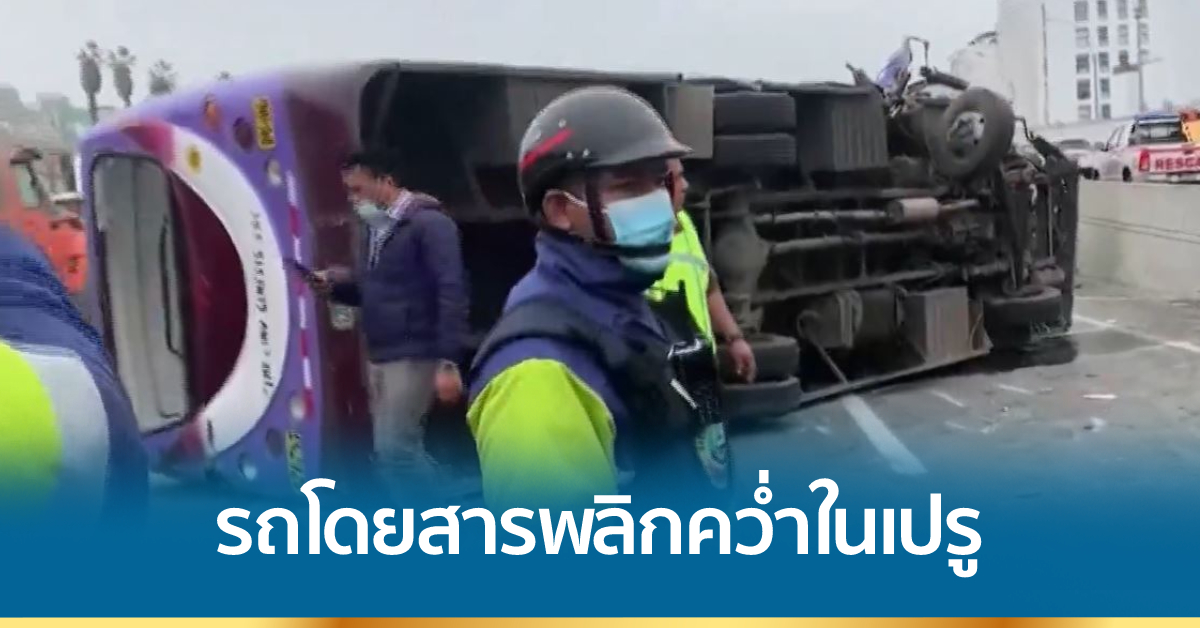 รถโดยสารพลิกคว่ำกลางถนนในเมืองซาน บอร์ฮา จังหวัดลิมา ของเปรู ทำให้มีผู้ได้รับบาดเจ็บ 17 คน ในจำนวนนี้เป็นเด็ก 3 คน ภาพจากกล้องวงจรปิดเผยให้เห็นว่ารถโดยสารขับชนแท่งแบริเออร์ซึ่งตั้งอยู่บริเวณเกาะกลางถนน ทำให้รถพลิกคว่ำทันที ส่งผลให้ผู้ขับขี่รถจักรยานยนต์ที่แล่นตามหลังไม่สามารถหลบได้ทันและชนท้ายรถโดยสารอย่างจัง คนขับกระเด็นไปไกลและได้รับบาดเจ็บ จากการสอบสวนพบว่าคนขับรถโดยสารใช้ความเร็วเกินกว่ากำหนด เมื่อประสบอุบัติเหตุชนแท่งแบริเออร์จึงไม่สามารถควบคุมรถได้.-สำนักข่าวไทย