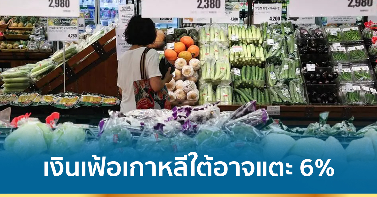 โซล 26 มิ.ย.- อัตราเงินเฟ้อของเกาหลีใต้อาจแตะร้อยละ 6 ในช่วงเดือนมิถุนายนถึงเดือนสิงหาคมนี้ อันเป็นผลจากการที่ราคาน้ำมัน อาหารและสินค้าต่าง ๆ แพงขึ้นทั่วโลก
