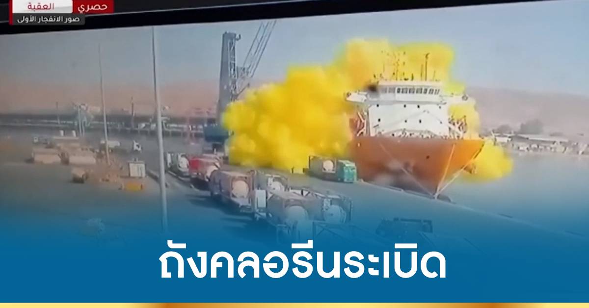 จอร์แดน 28 มิ.ย.-ถังคลอรีนหล่นลงพื้น ขณะเครนกำลังยกใส่เรือที่ท่าเรืออบากาในจอร์แดน ทำให้เกิดการระเบิด ก๊าซสีเหลืองฟุ้งกระจาย มีผู้เสียชีวิตอย่างน้อย 13 ราย และมีผู้บาดเจ็บราว 250 คน