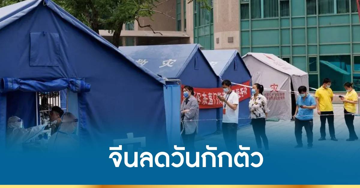 คณะกรรมาธิการสุขภาพแห่งขาติของจีน กล่าวในแถลงการณ์ว่า การกักตัวที่สถานที่ส่วนกลางจะลดลงจาก 14 วัน เหลือ 7 วัน และการเฝ้าระวังสุขภาพที่บ้านจะลดลงจาก 7 วันเหลือ 3 วัน หลักเกณฑ์ล่าสุดของเจ้าหน้าที่ด้านสาธารณสุข ยังผ่อนคลายข้อกำหนดเรื่องการกักโรคสำหรับผู้สัมผัสใกล้ชิดกับผู้ที่มีผลการตรวจหาเชื้อไวรัสโควิด-19 เป็นบวกด้วย จีนผ่อนคลายมาตรการคุมโควิดอย่างระมัดระวังสำหรับผู้ที่เดินทางเข้าประเทศในช่วงหลายเดือนที่ผ่านมา โดยก่อนหน้านี้ กรุงปักกิ่งก็ลดระยะเวลาการกักตัวเพื่อดูอาการที่สถานที่ส่วนกลางจาก 14 วัน เหลือ 10 วัน และเมื่อเดือนที่แล้ว จีนก็ยกเลิกข้อกำหนดเนื่องการตรวจหาเชื้อโควิด-19 สำหรับผู้ที่เดินทางมาจากหลายประเทศ เช่น สหรัฐ.-สำนักข่าวไทย