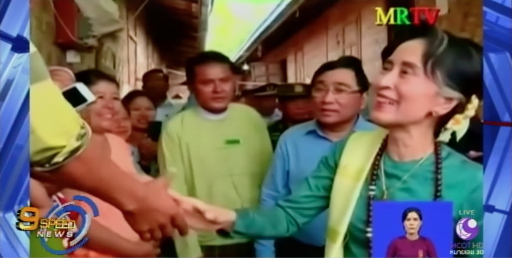 นางออง ซาน ซูจี มนตรีแห่งรัฐและผู้นำโดยพฤตินัยของเมียนมาร์ เดินทางเยี่ยมผู้ลี้ภัยพลัดถิ่นในประเทศ หรือ IDP ที่เมืองมิตจีนา รัฐกะฉิ่นทางภาคเหนือเป็นครั้งแรก นับตั้งแต่รัฐบาลของเธอเข้ามาบริหารประเทศอย่างเป็นทางการเมื่อเดือนเมษายนปีที่แล้ว นางซูจี ยังเรียกร้องให้ทุกฝ่ายเข้ามามีส่วนร่วมในการสร้างสันติภาพในประเทศ โดยนางซูจี เจ้าของรางวัลโนเบลสาขาสันติภาพ ยังร่วมประชุมร่วมกับผู้นำชุมชนกลุ่มชาติพันธุ์และกลุ่มเจรจาสันติภาพอย่างสร้างสรรค์ หรือพีซีจี เพื่อหารือเรื่องข้อตกลงหยุดยิงด้วย. -สำนักข่าวไทย