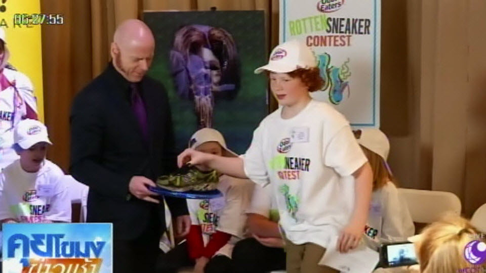 สหรัฐ 30 มี.ค.-สหรัฐจัดประกวดรองเท้าผ้าใบเหม็นเน่าที่สุด คอนเนอร์ สโลคอมบ์ เด็กชายวัย 12 ปี คว้าแชมป์ รับเงินรางวัลประมาณ 87,500 บาท