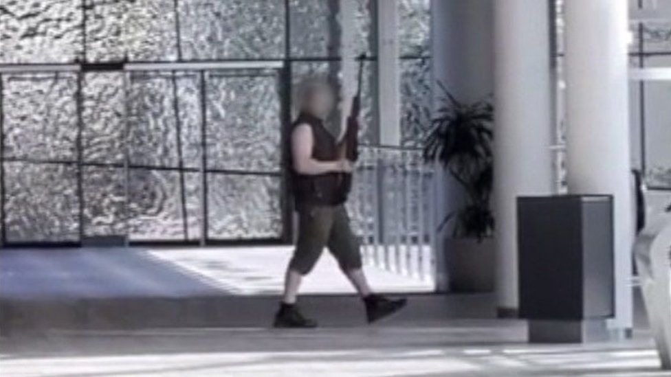 สถานีโทรทัศน์ในเดนมาร์กแพร่ภาพถ่ายไม่ชัดของชายที่ถูกระบุว่าเป็นคนร้ายสวมกางเกงขาสั้นระดับหัวเข่า เสื้อกั๊กหรือเสื้อไม่มีแขน มือขวาถือสิ่งที่ดูเหมือนปืนยาว ผู้เห็นเหตุการณ์คนหนึ่งเล่าว่า คนร้ายดูเกรี้ยวกราดมาก และพูดกับเขาที่กำลังบันทึกภาพเหตุการณ์ว่า ปืนที่ถืออยู่ไม่ใช่ของจริง พร้อมกับแสดงท่าทีที่ดูเหมือนภาคภูมิใจกับสิ่งที่กำลังทำอย่างมาก คนร้ายถูกตำรวจจับกุมเมื่อเวลา 17:58 น.วันอาทิตย์ตามเวลาท้องถิ่น ตรงกับเวลา 22:58 น.วันเดียวกันตามเวลาในไทย