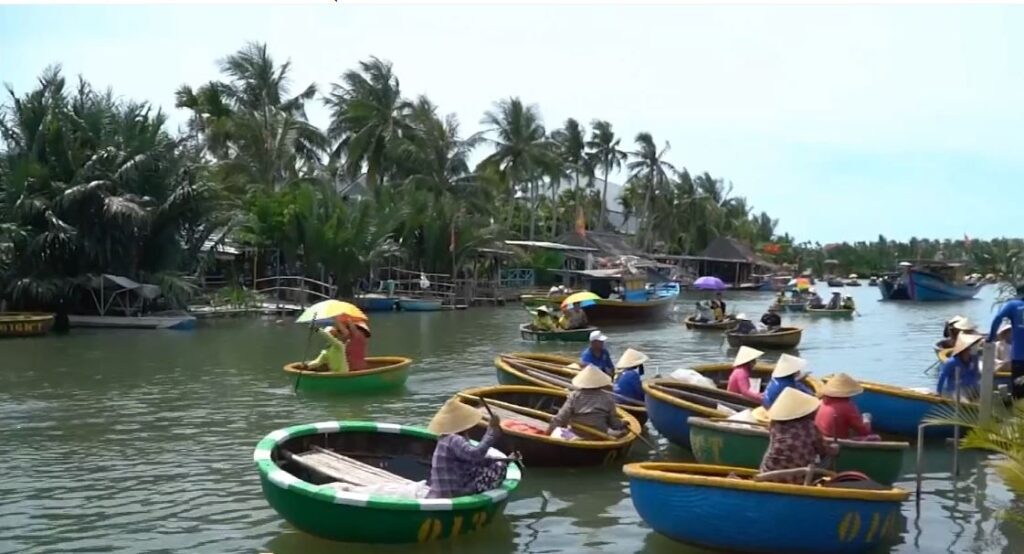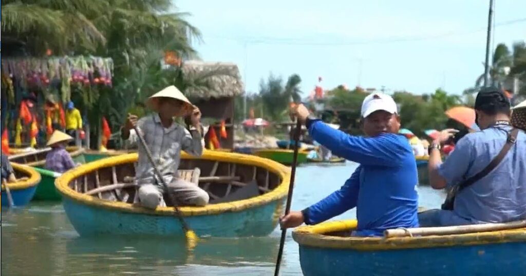 นี่เป็นหน้าตาของ “เรือกระด้ง” หรือเรือตะกร้า ของชาวเวียดนามที่หมู่บ้านกั๊มทาน ในเมืองฮอยอัน กลายเป็นจุดเช็กอินยอดฮิต ทั้งของนักท่องเที่ยวชาวเวียดนามเองและชาวต่างชาติ เพราะว่าเป็นเรือที่แปลกตามากๆ เป็นทรงกลม เหมือนตะกร้า ซึ่งเป็นเรือสานจากไม้ไผ่ นั่งได้ประมาณ 3 คน ลัดเลาะไปตามแม่น้ำ ชมบรรยากาศป่าชายเลน ใช้เวลาบนเรือราวๆ 40 นาที พลาดไม่ได้คือการโชว์พายเรือกระด้งวนเป็นวงกลม เพิ่มความสนุกสนานเร้าใจ นักท่องเที่ยวสามารถขอให้คนพายพายวนแรงๆ ได้ ถ้าอยากหวาดเสียว และถ้าเป็นนักท่องเที่ยวไทย คนพายจะเอาใจด้วยการเปิดเพลงไทย เช่น ขอใจแลกเบอร์โทร ของหญิงลี เรียกเสียงเสียงหัวเราะอย่างมาก