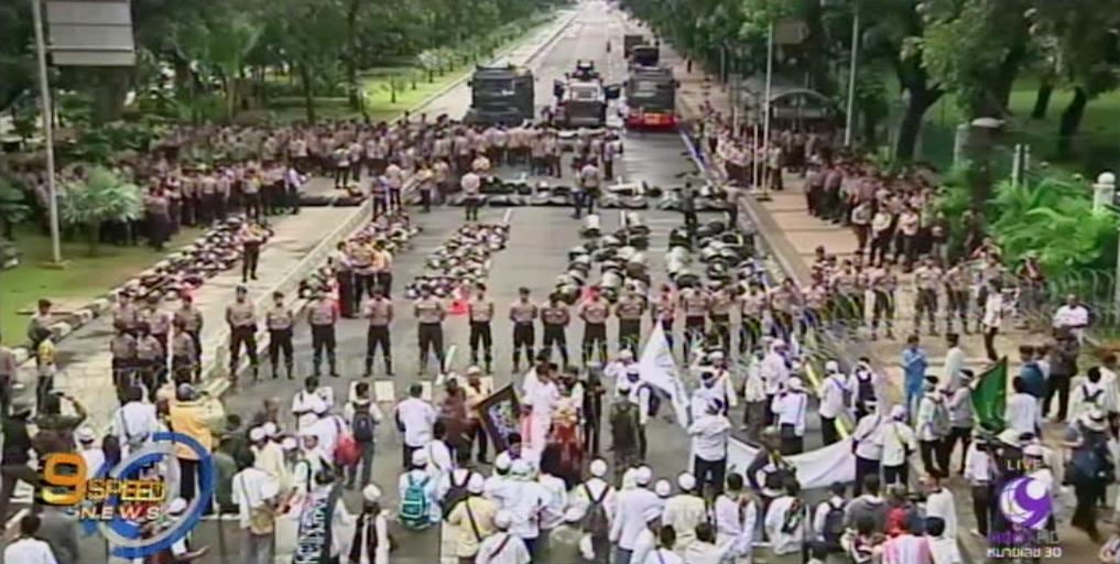 ชาวมุสลิมหลายพันคนในอินโดนีเซียพร้อมใจเข้าร่วมการประท้วงครั้งใหญ่ที่กรุงจาการ์ตาในวันนี้เพื่อขับไล่ นายบาสุกี ปูร์นามา หรือ อาฮอก ผู้ว่าการกรุงจาการ์ตาซึ่งนับถือคริสต์และโดนคดีตามกฎหมายฐานดูหมิ่นอิสลามออกจากตำแหน่ง ท่ามกลางการรักษาความปลอดภัยอย่างเข้มงวดจากเจ้าหน้าที่ตำรวจ โดยการประท้วงมีขึ้นหลังจากพิธีละหมาดประจำวันศุกร์ และกลุ่มผู้ประท้วงวางแผนเดินขบวนจากมัสยิดอิสติกลัลในใจกลางกรุงจาการ์ตาไปยังทำเนียบประธานาธิบดี ขณะที่ก่อนหน้านี้ในช่วงเช้า โฆษกตำรวจจาการ์ตาเปิดเผยว่าได้จับกุมตัวแกนนำกลุ่มมุสลิมสุดโต่งและนักเคลื่อนไหวอีกหลายคนข้อหากบฏ. -สำนักข่าวไทย