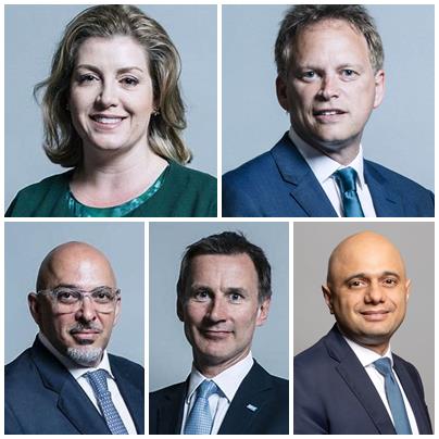 ผู้ประกาศตัวล่าสุดในวันนี้มี 5 คน ประกอบด้วยเพนนี มอร์ดันต์ รองรัฐมนตรีด้านนโยบายการค้าวัย 49 ปี นายแกรนต์ แชปปส์ รัฐมนตรีคมนาคมวัย 53 ปี นายนาดิม ซาฮาวี รัฐมนตรีคลังวัย 55 ปี นายเจเรมี ฮันต์ อดีตรัฐมนตรีต่างประเทศวัย 55 ปี และนายซาจิด จาวิด อดีตรัฐมนตรีสาธารณสุขและสวัสดิการสังคมวัย 52 ปี มอร์ดันต์ระบุว่า ช่วงเวลานี้เป็นจุดเปลี่ยนสำคัญของประเทศ เธอเชื่อว่าหากอังกฤษได้รัฐบาลสายสังคมนิยมในการเลือกตั้งครั้งหน้า จะเกิดหายนะอย่างแน่นอน ขณะที่ผู้ประกาศตัว 4 คนหลังล้วนชูเรื่องลดภาษี ขัดกับนายริชี ซูนัก อดีตรัฐมนตรีคลังที่เป็นตัวเก็งหัวหน้าพรรคคนใหม่ ส่วนนางลิซ ทรัสส์ รัฐมนตรีต่างประเทศวัย 46 ปีจะหาเสียงในวันจันทร์ด้วยนโยบายลดภาษีและแก้ปัญหาค่าครองชีพสูง ขณะที่นายเบน วอลเลซ รัฐมนตรีกลาโหมไม่ขอลงแข่งขันชิงหัวหน้าพรรค