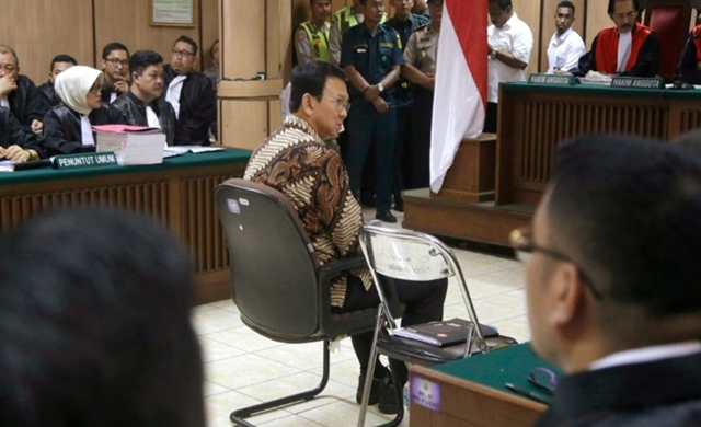 นายปูร์นามาวัย 50 ปี หรือที่รู้จักในชื่อจีนว่าอาฮก เป็นผู้ว่าการกรุงจาการ์ตาที่เป็นคริสต์ชนคนแรกในรอบกว่า 50 ปี ขึ้นศาลในวันนี้เป็นครั้งแรก ยืนยันความบริสุทธิ์ของตนระหว่างให้การแก้ต่างและใช้ผ้าเช็ดหน้าซับน้ำตาเป็นระยะ ๆ ว่า แม้เป็นคริสต์ชนแต่ก็เติบโตมาท่ามกลางชาวมุสลิม ได้รับการอบรมสั่งสอนตั้งแต่เล็กจนโตจากเพื่อนฝูงของบิดามารดาที่เป็นชาวมุสลิม เขาทราบดีว่าต้องเคารพคำสอนอันศักดิ์สิทธิในคัมภีร์อัลกุรอ่าน จึงไม่เข้าใจว่าเหตุใดจึงถูกกล่าวหาว่าดูหมิ่นศาสนาอิสลาม เป็นการกล่าวหาที่ทำร้ายจิตใจอย่างร้ายแรง พร้อมกับแจกแจงว่าได้ทำงานให้แก่พื้นที่ที่ของชาวมุสลิมหลากหลายอย่าง ทั้งการก่อสร้างมัสยิด การสนับสนุนโรงเรียนสอนศาสนา และการบริจาคโคในวันสำคัญ