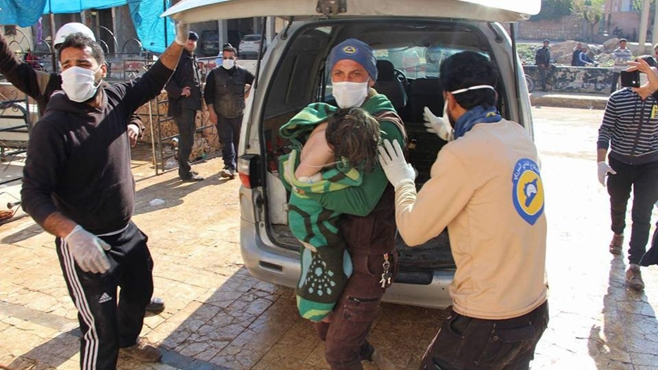 สมาชิกกลุ่มป้องกันพลเรือนซีเรียหรือที่รู้จักในชื่อไวท์เฮลเม็ตเผยว่า ฝูงเครื่องบินรบยิงจรวดบรรจุแก๊สพิษถล่มเมืองข่าน เชคุน 4 ครั้งเมื่อเช้าวันอังคารตามเวลาท้องถิ่น เป็นย่านที่อยู่อาศัย ห่างจากเมืองอิดลิบ เมืองเอกของจังหวัดอิดลิบไปทางใต้ 55 กิโลเมตร ชาวบ้านเผยว่า ขณะเกิดเหตุกำลังนอนหลับและไม่รู้ว่าถูกถล่มด้วยแก๊สพิษ จนกระทั่งหลายคนเริ่มแสดงอาการ กลุ่มไวท์เฮลเม็ตเข้ามาช่วยเหลือด้วยการใช้น้ำฉีดล้างเนื้อตัวชาวบ้านที่นอนอยู่บนพื้น