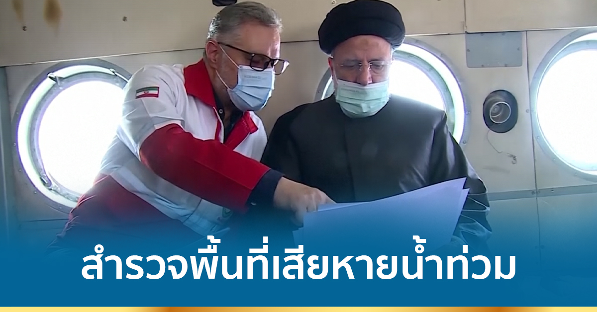 อิหร่าน 31 ก.ค.- “อิบราฮิม ไรซี” ประธานาธิบดีอิหร่าน ขึ้นเฮลิคอปเตอร์สำรวจความเสียหายจากเหตุน้ำท่วมในหลายเมืองทั่วประเทศ หลังเกิดฝนตกหนัก น้ำท่วมและดินถล่มตั้งแต่ 2 วันก่อน