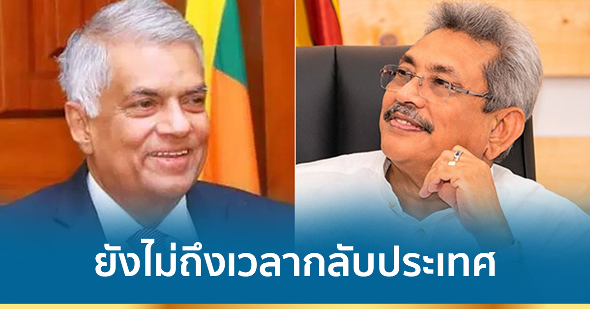 โคลัมโบ 1 ส.ค. – ประธานาธิบดีรานิล วิกรมสิงเห ของศรีลังกา ระบุว่า ตอนนี้ยังไม่ใช่เวลาเหมาะสมที่อดีตประธานาธิบดีโกตาบายา ราชปักษา จะเดินทางกลับประเทศ เนื่องจากอาจทำให้สถานการณ์ความตึงเครียดทางการเมืองปะทุขึ้นอีกครั้ง