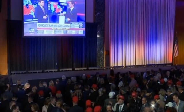 งานเลี้ยงฉลองชัยอย่างเป็นทางการของพรรครีพับลิกันที่ห้องบอลลูนในย่านแมนฮัตตันบรรยากาศตอนแรกยังไม่คึกคักนัก แต่เมื่อทรัมป์เริ่มกวาดชัยชนะในรัฐแล้วรัฐเล่า ผู้คนก็เพิ่มจำนวนขึ้นอย่างรวดเร็ว หลายคนยอมรับว่าเป็นชัยชนะเหนือความคาดหมาย บางคนพาลูกเล็กแม้แต่ทารกแรกเกิดมาร่วมงานด้วย ทุกคนเห็นตรงกันว่าชาวอเมริกันลงคะแนนเลือกความเปลี่ยนแปลง ผู้สนับสนุนชี้ว่า สิ่งที่ทำให้ทรัมป์ชนะอย่างไม่น่าเชื่อคือการคัดค้านโครงการประกันสุขภาพโอบามาแคร์ของรัฐบาลบารัค โอบามา การรับปากจะสร้างงาน กวาดล้างกลุ่มรัฐอิสลาม (ไอเอส) และการทุจริตในรัฐบาล หลังจากประชาชนต้องใช้ชีวิตอย่างยากลำบากมาตั้งแต่เกิดวิกฤตการเงินโลกปี 2551