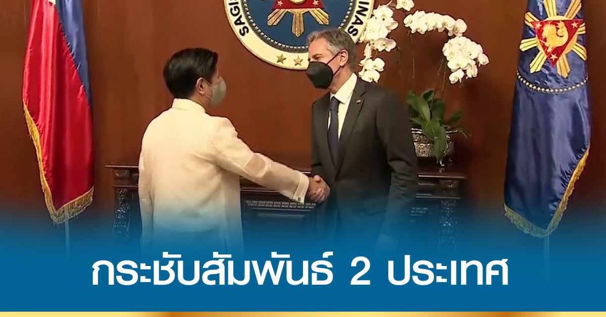 นายบลิงเคน กล่าวต่อผู้นำฟิลิปปินส์ว่า ฟิลิปปินส์เป็นพันธมิตรที่เหนียวแน่นของสหรัฐ และเชื่อว่าจะเหนียวแน่นยิ่งๆ ขึ้นไป ขณะที่นายมาร์กอส กล่าวตอบว่า ความสัมพันธ์พิเศษระหว่างสหรัฐกับฟิลิปปินส์นั้นเป็นที่น่ายินดี สหรัฐมีสนธิสัญญาด้านความมั่นคงกับฟิลิปปินส์ และสนับสนุนฟิลิปปินส์ในกรณีพิพาทเรื่องกรรมสิทธิ์ในทะเลจีนใต้กับจีนอย่างเต็มที่. – สำนักข่าวไทย