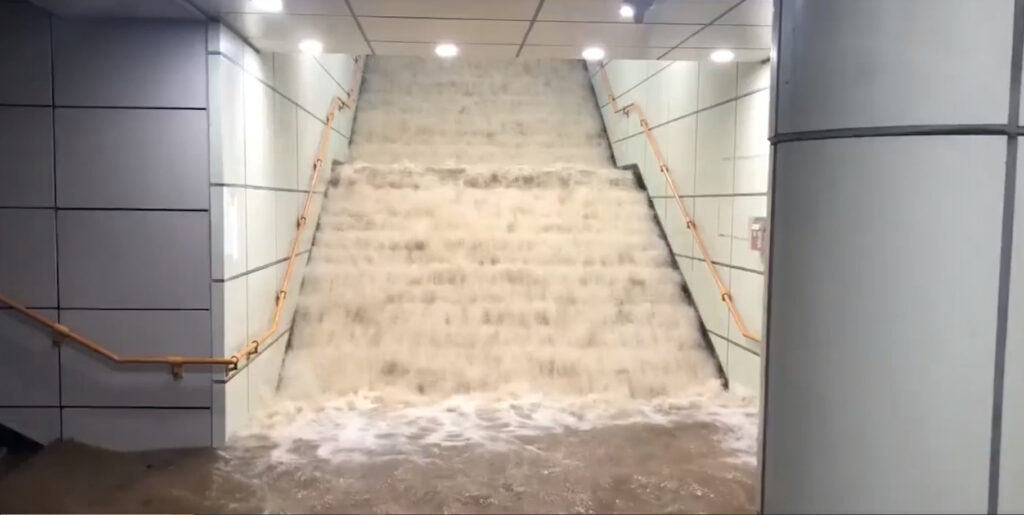 เกาหลีใต้ 9 ส.ค.-ฝนถล่มเกาหลีใต้ น้ำท่วมหนักกรุงโซล และพื้นที่อื่นๆ ทางตอนกลางของประเทศ บางจุดน้ำท่วมสูงมิดหลังคารถ และยังมีน้ำทะลักรถไฟใต้ดินด้วย