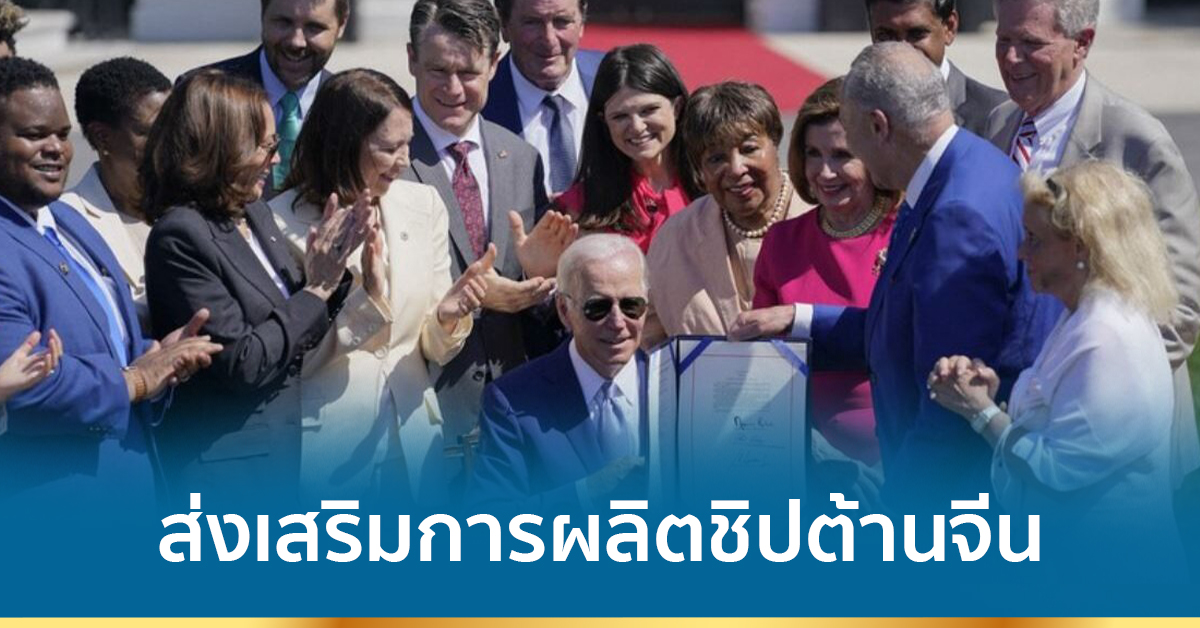 วอชิงตัน 10 ส.ค.- ประธานาธิบดีโจ ไบเดน ของสหรัฐลงนามร่างกฎหมายมูลค่า 52,700 ล้านดอลลาร์สหรัฐ (ราว 1.86 ล้านล้านบาท) เพื่อส่งเสริมการผลิตและพัฒนาเซมิคอนดักเตอร์หรือชิป หวังให้ได้เปรียบด้านเทคโนโลยีในช่วงที่เผชิญการแข่งขันจากจีนมากขึ้น