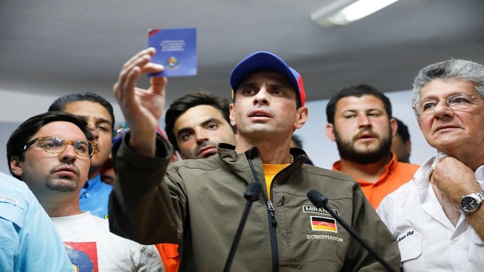นายกาปรีเลสวัย 44 ปี ปัจจุบันเป็นผู้ว่าการรัฐมีรันดา เคยลงสมัครชิงตำแหน่งประธานาธิบดีมาแล้ว 2 สมัย และเป็นความหวังของฝ่ายค้านว่าจะสามารถโค่นประธานาธิบดีนิโกลาส มาดูโร กรมบัญชีกลางสั่งห้ามเขามีตำแหน่งทางการเมืองเป็นเวลา 15 ปี เนื่องจากมีความไม่ชอบมาพากลในการบริหารประกอบด้วยการฝ่าฝืนกฎหมายจัดซื้อจัดจ้างและการนำเงินบริจาคของสถานทูตอังกฤษและโปแลนด์ไปบริหารจัดการอย่างไม่เหมาะสม กรมบัญชีกลางให้เวลาเขายื่นอุทธรณ์ที่กรมภายใน 15 วันทำการ หรือยื่นเรื่องให้ศาลฎีกาประกาศให้เป็นโมฆะภายใน 180 วัน รอยเตอร์คาดว่า การร้องเรียนไม่น่าจะได้ผลเพราะทั้งสองหน่วยงานสนับสนุนรัฐบาล