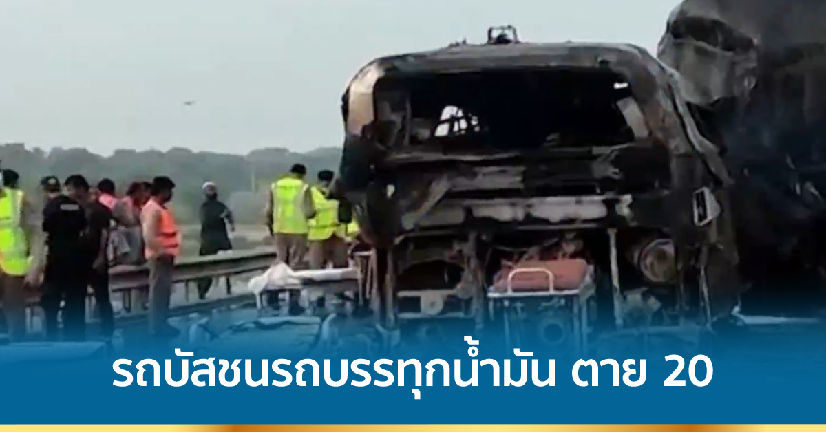 ตำรวจและเจ้าหน้าที่กู้ภัยปากีสถาน เปิดเผยว่า มีผู้เสียชีวิต 20 คน จากอุบัติเหตุรถบัสพุ่งชนรถบรรทุกน้ำมัน จุดที่เกิดเหตุอยู่ใกล้กับเมืองมุลตัน ตำรวจกล่าวว่าก่อนจะเกิดเหตุ มีรถบัส 3 คัน กำลังวิ่งแข่งกันมา ก่อนที่คันหนึ่งจะพุ่งชนกับรถน้ำมันจนทำให้ไฟลุกท่วมทั้งรถบัสและรถบรรทุกน้ำมัน โดยรถบรรทุกน้ำมันถูกไฟไหม้เสียหายทั้งคัน ส่วนรถบัสคู่กรณีเป็นของบริษัทแดวู และพนักงานขับรถคันดังกล่าวเป็นหนึ่งในผู้เสียชีวิต ขณะที่มีผู้รอดชีวิตจากอุบัติเหตุครั้งนี้จำนวน 6 คน.-สำนักข่าวไทย