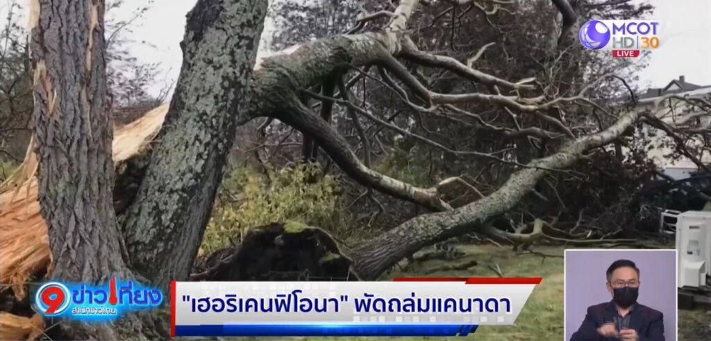 แคนาดา 26 ก.ย. – เฮอริเคนฟิโอนา ซึ่งเข้าพัดถล่มทางตะวันออกออกของแคนาดาเมื่อสุดสัปดาห์ที่ผ่านมาสร้างความเสียหายให้กับประชาชนไม่น้อยหลังจากก่อนหน้านี้ได้พัดถล่มเปอร์โตริโก โดมินิกันและเบอร์มิวดา