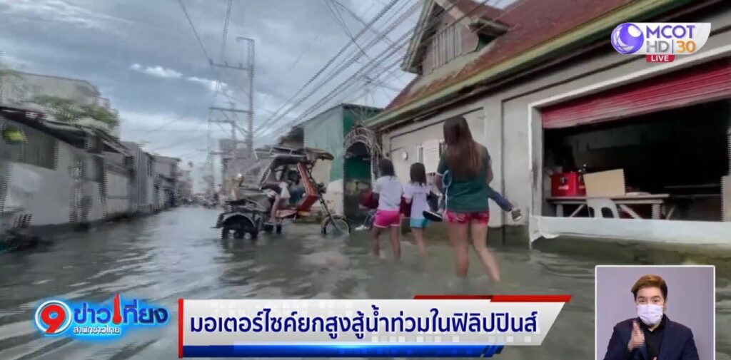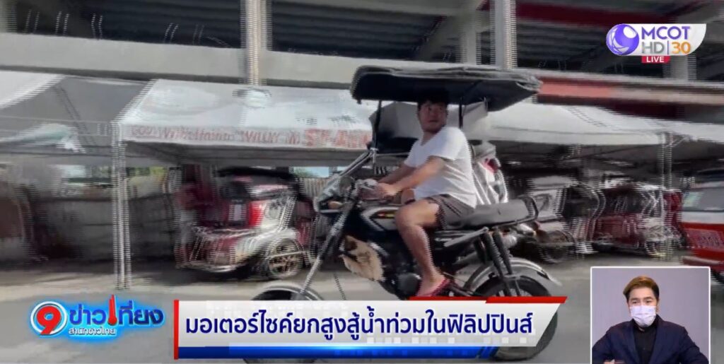 ฟิลิปปินส์ 18 ต.ค. – ชาวฟิลิปปินส์ได้รับผลกระทบจากสถานการณ์น้ำท่วม ทำให้บรรดาคนขับรถมอเตอร์ไซค์พ่วงข้างมีวิธีปรับตัวสู้กับระดับน้ำด้วยการดัดแปลงรถพ่วงข้างให้เป็นรถยกสูง ทำให้สามารถลุยน้ำได้อย่างสบาย