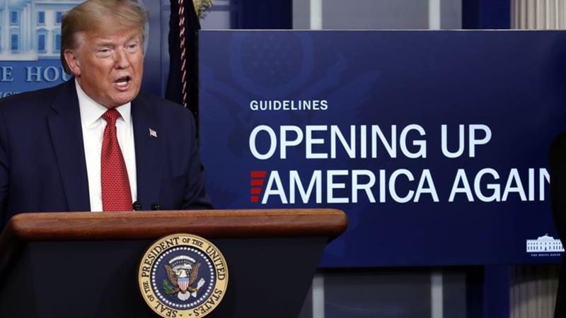เว็บไซต์ซีเอ็นเอ็น (CNN) อ้างเอกสารแนวทางที่ทำเนียบขาวแจกให้ผู้ว่าการรัฐระหว่างการสนทนาทางโทรศัพท์เมื่อบ่ายวานนี้ว่า แบ่งการผ่อนคลายมาตรการจำกัดออกเป็น 3 ระยะโดยใช้จำนวนผู้ป่วยและศักยภาพของโรงพยาบาลเป็นเกณฑ์ ระยะแรกใช้เมื่อจำนวนผู้ป่วยในช่วง 14 วันลดลงอย่างคงที่ และสถานการณ์ในโรงพยาบาลกลับเข้าสู่ภาวะก่อนเกิดวิกฤต ระยะนี้รัฐบาลระดับรัฐควรตั้งจุดคัดกรองและตรวจหาเชื้อที่ปลอดภัยและมีประสิทธิภาพได้อย่างรวดเร็ว จัดหาชุดอุปกรณ์ป้องกันส่วนบุคคลหรือพีพีอี (PPE) ให้แก่โรงพยาบาลได้เองและรวดเร็ว ประชาชนควรรักษาสุขอนามัยที่ดีต่อไปด้วยการหมั่นล้างมือและมีสิ่งปกปิดใบหน้าเมื่ออยู่ในที่สาธารณะ ผู้ประกอบการและสถานที่ขนาดใหญ่ เช่น ร้านอาหาร โรงยิม สามารถเปิดให้บริการโดยรักษาระยะห่างทางสังคม วัดไข้ ตรวจหาเชื้อและรักษาสุขอนามัยภายในสถานที่ แต่ควรปิดโรงเรียน สถานบันเทิงและให้พนักงานทำงานจากบ้านต่อไป ลดการเดินทางที่ไม่จำเป็น ประชากรกลุ่มเสี่ยงควรอยู่แต่ในบ้าน ส่วนระยะสองและระยะสาม ซีเอ็นเอ็นไม่ได้รายงานในรายละเอียด เพียงแต่ระบุว่าทยอยลดมาตรการจำกัดลงจากเดิม