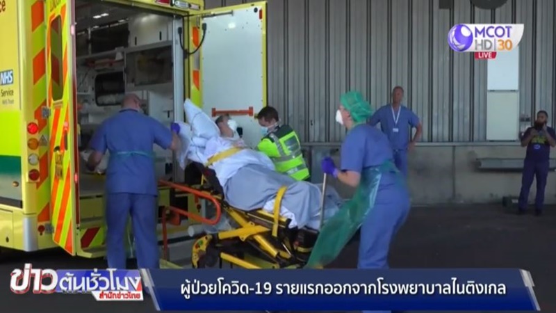 บุคลากรทางการแพทย์ซึ่งปฏิบัติหน้าที่อยู่โรงพยาบาลชั่วคราวไนติงเกลกรุงลอนดอน ปรบมือแสดงความยินดีในนาทีที่มีการนำตัวนายไซม่อน ชุง อายุ 58 ปี ผู้ที่หายป่วยจากโควิด-19 คนแรก ออกจากโรงพยาบาล พวกเขาบอกว่าการได้เห็นผู้ป่วยคนแรกออกจากโรงพยาบาลนับเป็นช่วงเวลาที่ยิ่งใหญ่ และเป็นกำลังใจในการทำงานให้บุคลากรของโรงพยาบาล โรงพยาบาลชั่วคราวแห่งนี้ใช้เวลาสร้างเพียง 9 วัน เพื่อรองรับผู้ป่วยโควิด-19 โดยเฉพาะ ปัจจุบันอังกฤษมีผู้เสียชีวิตกว่า 16,000 คน และมีผู้ติดเชื้อสะสมกว่า 120,000 คน.-สำนักข่าวไทย