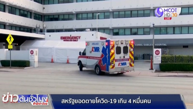 สหรัฐ 20 เม.ย. – ยอดผู้เสียชีวิตจากโควิด-19 ในสหรัฐ พุ่งต่อเนื่อง ในรอบ 24 ชั่วโมงที่ผ่านมามีผู้เสียชีวิตเพิ่มอีก 1,997 คน ทำให้เสียชีวิตสะสมเพิ่มเป็นกว่า 40,000 คน
