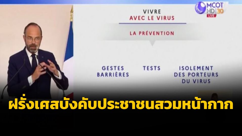 นายกรัฐมนตรีเอดัวร์ ฟิลิปป์ ของฝรั่งเศส แถลงแนวทางในการปฏิบัติตัวของประชาชน หลังจากฝรั่งเศสเตรียมเริ่มผ่อนคลายมาตรการคุมเข้มการแพร่ระบาดของโควิด-19 ในวันที่ 11 พฤษภาคม ทางการกำหนดว่าผู้ที่จะใช้บริการรถโดยสารสาธารณะต้องสวมหน้ากากอนามัยหรือหน้ากากผ้าทุกครั้ง และใครที่ต้องทำงานมาจากบ้านให้ปฏิบัติต่อไป พร้อมมีคำแนะนำว่าช่วงนี้ยังไม่ควรวางแผนเดินทางไปพักร้อน อย่างไรก็ดี เวลานี้การแพร่ระบาดในฝรั่งเศสถือว่าผ่านจุดวิกฤติหนักสุดไปแล้ว ขณะที่ล่าสุดมีผู้ติดเชื้อสะสมกว่า 150,000 คน และมีผู้เสียชีวิตแล้วเกือบ 20,000 คน .-สำนักข่าวไทย