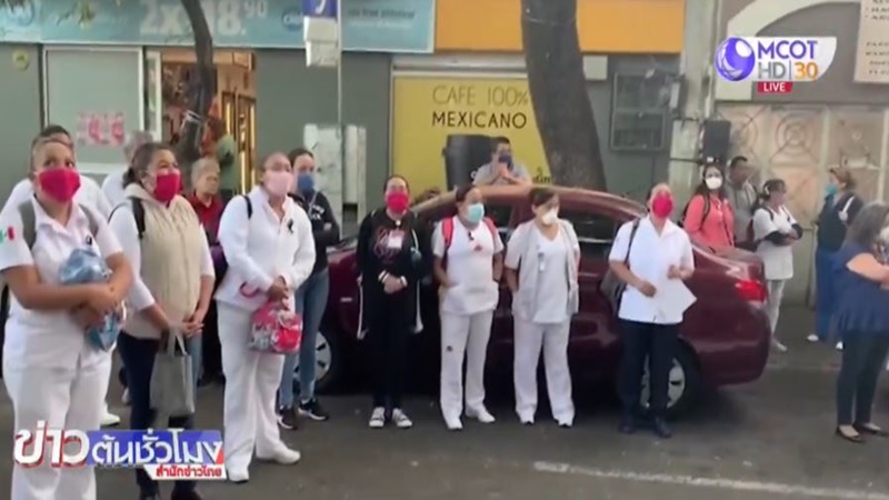 ที่กรุงเม็กซิโกซิตี เมืองหลวงของเม็กซิโก แพทย์ พยาบาล และบุคลากรทางการแพทย์ โรงพยาบาลรัฐบาล ชุมนุมประท้วงปิดกั้นทางเข้าสำนักงานข้าราชการ สาเหตุจากความวิตกกังวล หลังจำนวนบุคลากรทางแพทย์ในเม็กซิโกติดเชื้อโควิด-19 เพิ่มขึ้นอย่างต่อเนื่อง โดยเรียกร้องรัฐบาลให้เพิ่มหน้ากากอนามัย รวมถึงชุดและอุปกรณ์ป้องกันการติดเชื้อให้กับบุคลากรทางการแพทย์ให้มีใช้อย่างเพียงพอในการปฏิบัติหน้าที่ต่อสู้กับการแพร่ระบาดของไวรัส จนถึงขณะนี้มีผู้ติดเชื้อโควิด-19 ในเม็กซิโกแล้ว 8,772 คน เสียชีวิตอย่างน้อย 712 คน ขณะที่รัฐบาลประกาศสถานการณ์การแพร่ระบาดของเชื้อโควิด-19 ในเม็กซิโก เข้าสู่ระยะที่ 3.-สำนักข่าวไทย