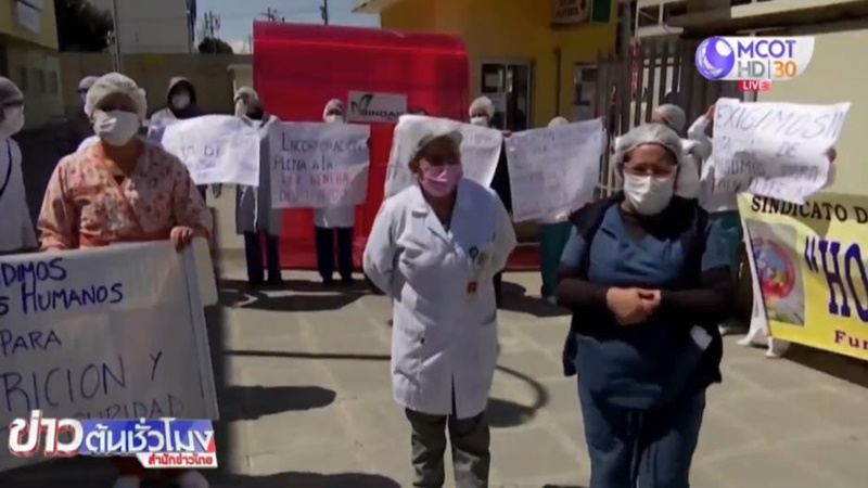 แพทย์ พยาบาล ในโบลิเวีย ชุมนุมประท้วงปัญหาการขาดแคลนยา หน้ากากอนามัย ชุดป้องกัน รวมทั้งเวชภัณฑ์ที่ใช้ต่อสู้กับการแพร่ระบาดของเชื้อโควิด-19 บุคลากรทางการแพทย์โบลิเวียยังเรียกร้องรัฐบาลให้เร่งแก้ปัญหาการขาดแคลนถุงบรรจุศพผู้เสียชีวิตจากโควิด-19 ที่ขณะนี้ขาดแคลนอย่างหนัก และยังไม่ได้รับความช่วยเหลือ ขณะที่รัฐบาลโบลิเวียดำเนินมาตรการต่างๆ ทั้งสั่งรักษาระยะห่าง สั่งปิดพรมแดน เพื่อควบคุมการแพร่ระบาด โบลิเวียพบผู้ติดเชื้อที่ได้รับการยืนยันแล้ว 609 คน เสียชีวิต 37 คน .-สำนักข่าวไทย