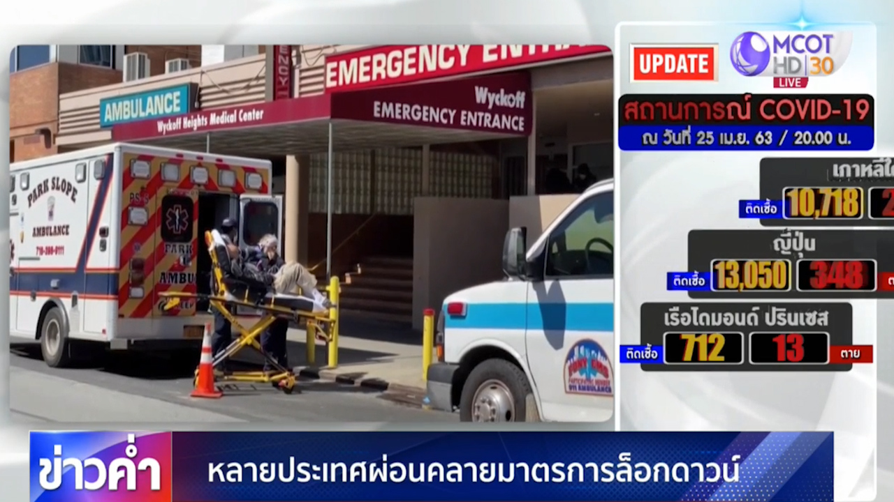 สหรัฐ, เอเชีย 25 เม.ย.- ยอดผู้เสียชีวิตจากไวรัสโคโรนา 2019 ทั่วโลกใกล้แตะ 200,000 คน และติดเชื้อเกือบ 2.8 ล้านคน ขณะที่หลายประเทศเริ่มผ่อนคลายมาตรการล็อกดาวน์ เพื่อจำกัดความเสียหายที่เกิดขึ้นกับเศรษฐกิจของประเทศ