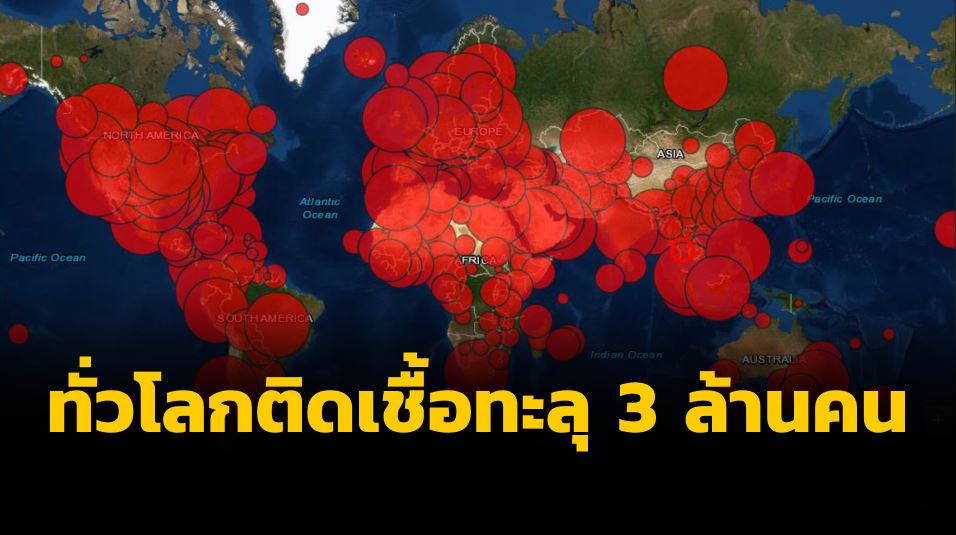 บัลติมอร์ 28 เม.ย. – ข้อมูลที่รวบรวมโดยมหาวิทยาลัยจอห์น ฮอปกินส์ของสหรัฐพบว่า นับจนถึงเช้าวันนี้ตามเวลาในประเทศไทย ทั่วโลกมีผู้ติดเชื้อไวรัสโคโรนา 2019 ที่ได้รับการยืนยันแล้ว 3,037,605 คน ใน 185 ประเทศ หรือเขตปกครอง