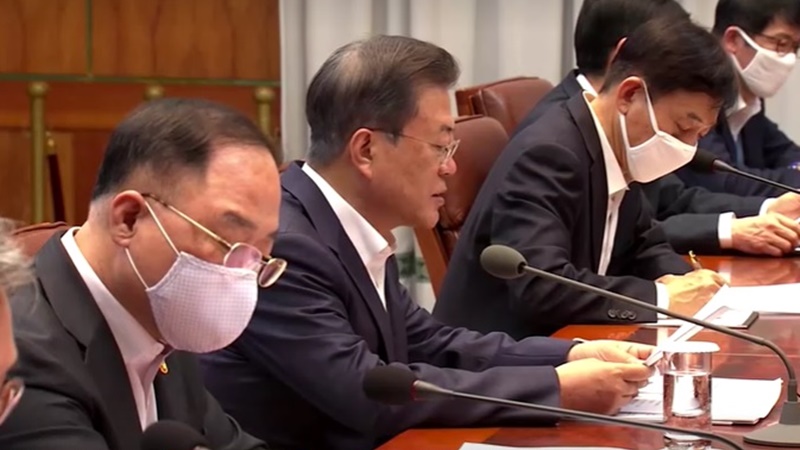 ประธานาธิบดีมุน แจ-อินพบปะกับกลุ่มผู้บริหารโรงแรมและพนักงานที่โรงแรมแกรนด์ วอล์คเกอร์ฮิลล์ โซล ซึ่งเป็นโรงแรมระดับห้าดาวในฝั่งตะวันออกของกรุงโซล และได้เน้นย้ำถึงความจำเป็นในการแก้ปัญหาแบบทุกฝ่ายได้ประโยชน์ เพื่อรักษาตำแหน่งงานในช่วงวิกฤตเศรษฐกิจจากการระบาดของโรคโควิด-19 ซึ่งผู้นำเกาหลีใต้ระบุว่า เป็นวิกฤติที่เลวร้ายที่สุดนับตั้งแต่วิกฤติการเงินปี 2540 ประธานาธิบดีมุนกล่าวว่า การเอาชนะวิกฤติในครั้งนี้ไม่ได้อยู่ที่การปรับโครงสร้าง แต่อยู่ที่การยังคงจ้างงาน