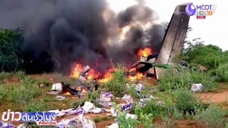 เครื่องบินที่ประสบเหตุเป็นของสายการบินแอฟริกัน เอ็กซเพรส แอร์เวย์ส ออกบินมาจากกรุงโมกาดิชูไปยังเมืองไบเดา และเดินทางต่อมายังเมืองบาร์เดล กระทั่งประสบเหตุตกจนเกิดไฟลุกท่วม ท่ามกลางข้าวของที่กระจัดกระจายไปทั่วบริเวณ.-สำนักข่าวไทย