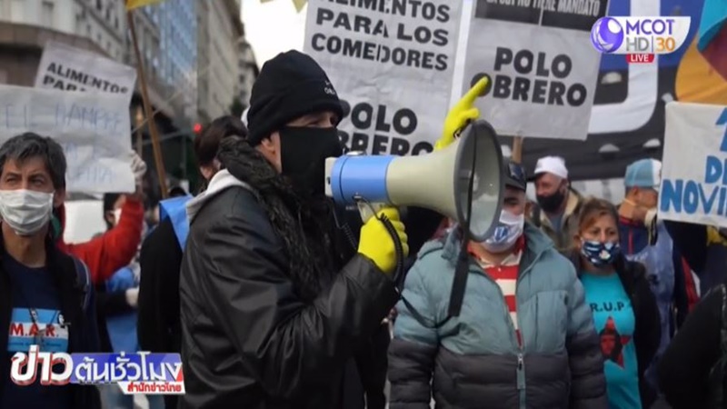 อาร์เจนตินา 7 พ.ค. – ประชาชนและกลุ่มนักเคลื่อนไหวในกรุงบัวโนสไอเรสชุมนุมประท้วงกลางถนน เรียกร้องรัฐบาลจัดหาอาหารให้ผู้ยากไร้หลายแสนคนที่ได้รับผลกระทบจากการปิดเมืองเพื่อสกัดโควิด-19
