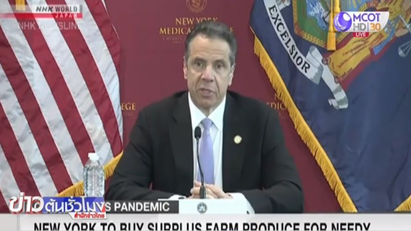 นายแอนดรูว์ คูโอโม ผู้ว่าการรัฐนิวยอร์กของสหรัฐ ประกาศแผนช่วยเหลือเกษตรกรที่ได้รับผลกระทบจากการระบาดของโรคโควิด-19 ด้วยการรับซื้อผลผลิตที่ล้นตลาด เนื่องจากร้านค้า ร้านอาหาร และโรงเรียนต่างๆ ถูกสั่งปิด เพื่อควบคุมการแพร่ระบาดของโควิด-19 นอกจากนี้รัฐนิวยอร์กมีแผนนำผลิตผลทางการเกษตรที่ซื้อจากเกษตรกรไปแจกจ่ายประชาชนกว่า 20,000 ครัวเรือน ผ่านทางธนาคารอาหารที่มีอยู่ราว 50 แห่งทั่วทั้งรัฐนิวยอร์ก.-สำนักข่าวไทย